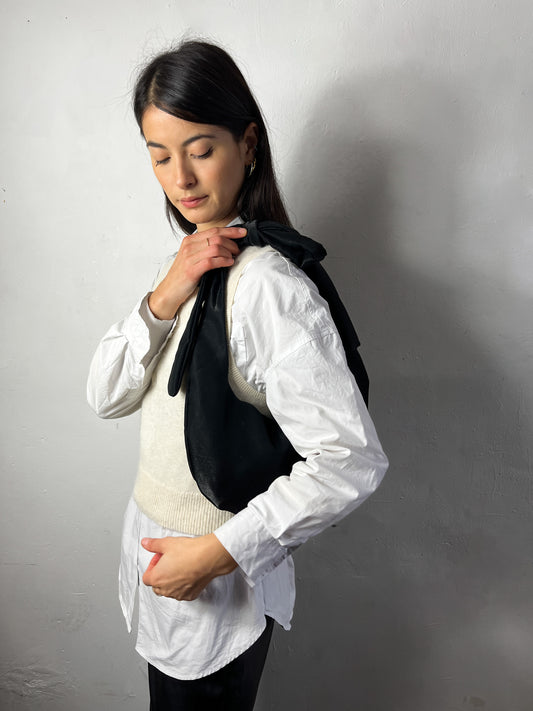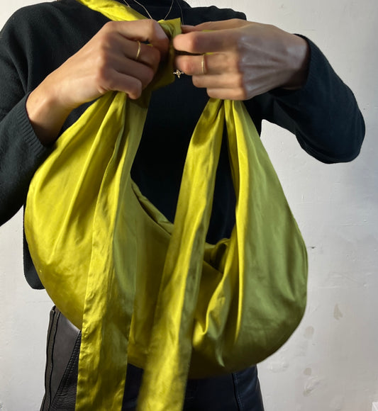 Luccichio Crossbody Sling Bag in Metallic Black Stretch Taffeta