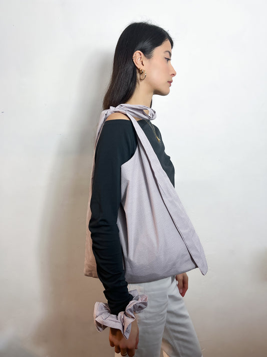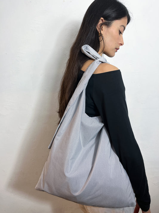 Gurido Crossbody Tote in Grey & White Cotton Poplin