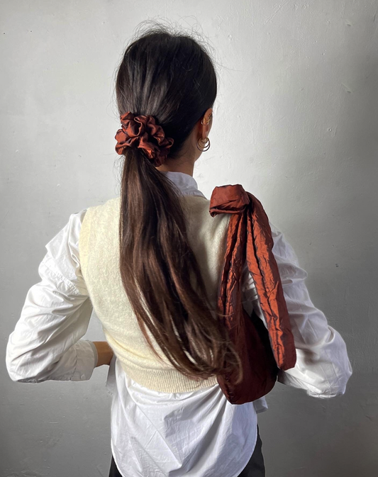 Cioccolato Hair Tie Scrunchie in Crinkle taffeta