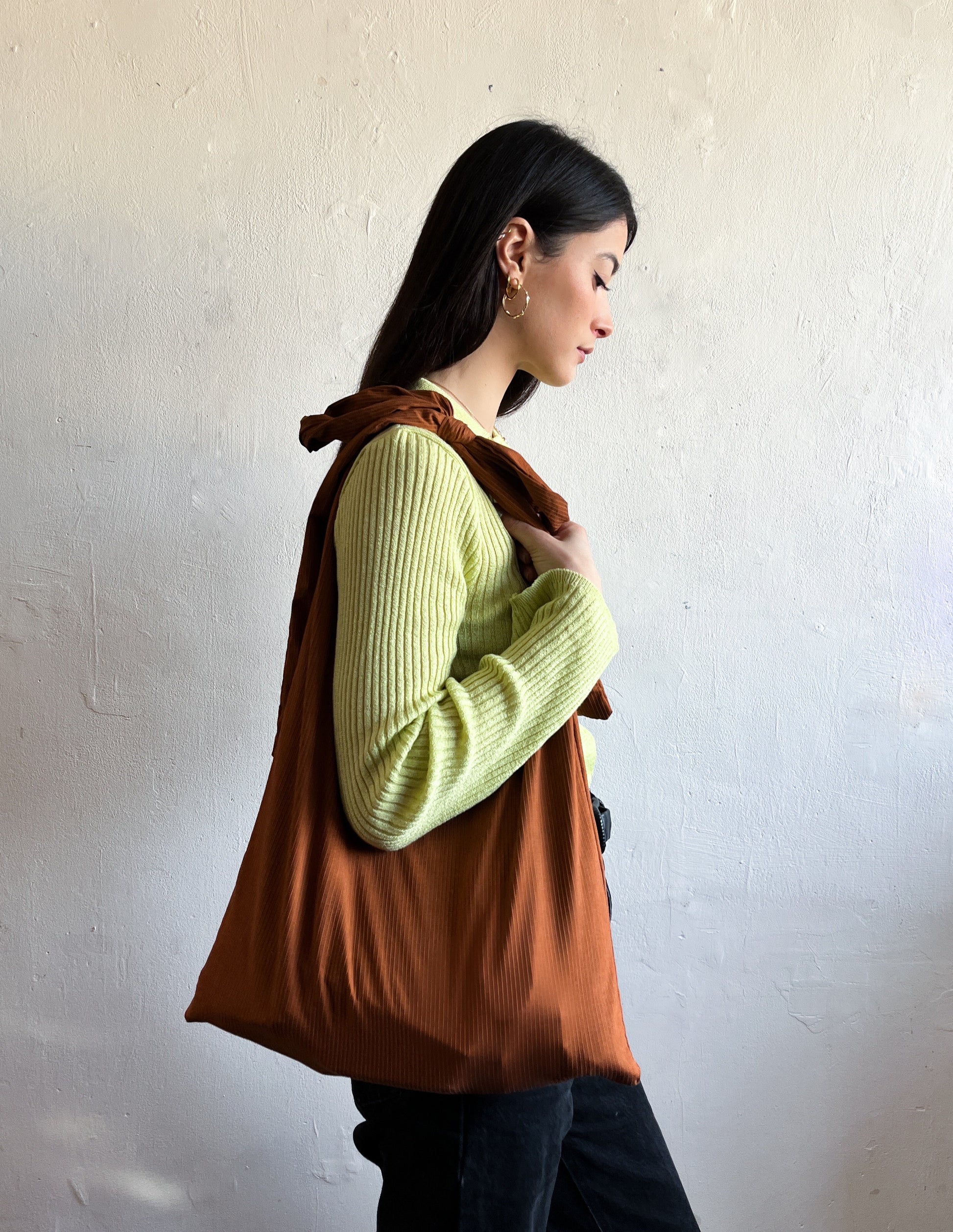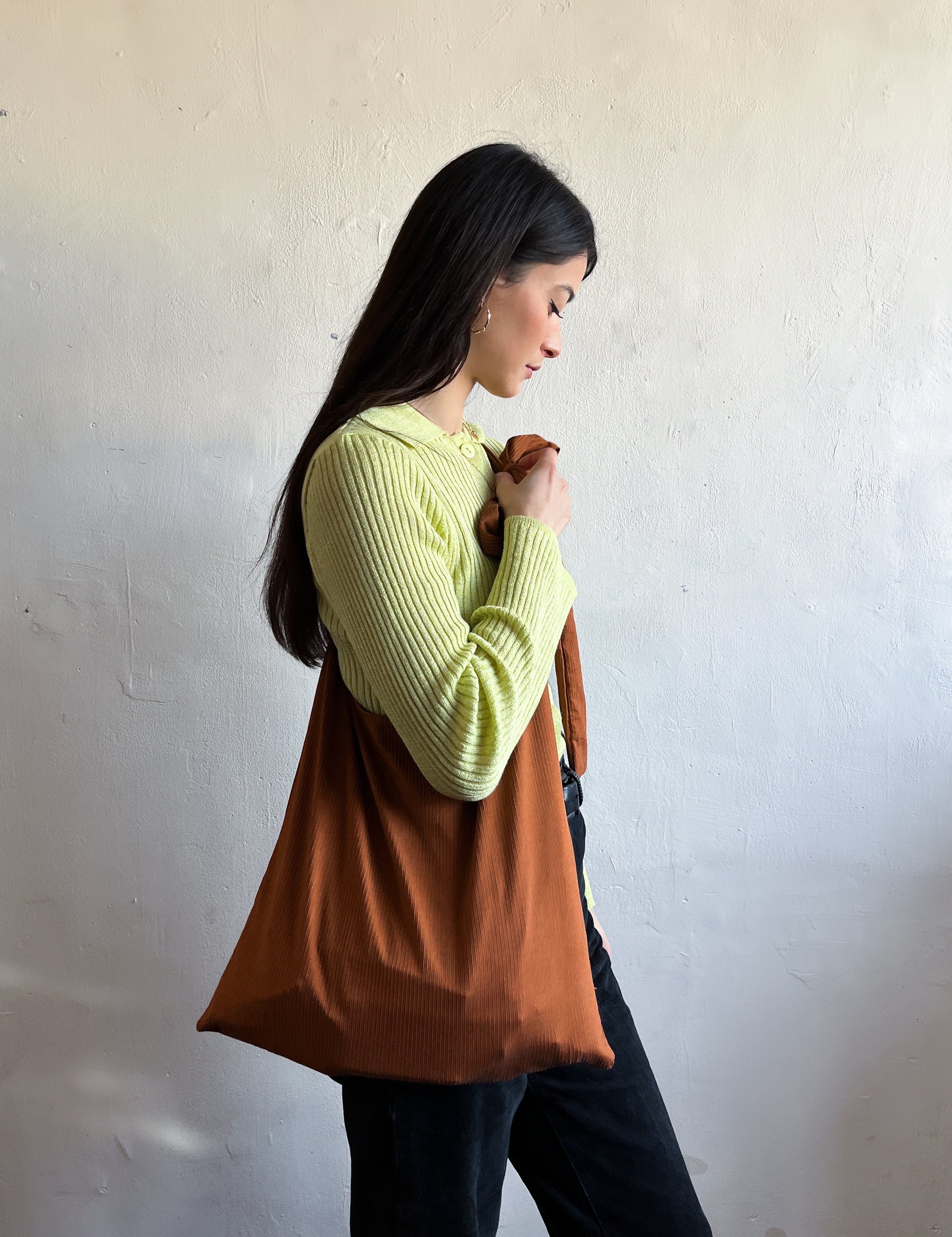 Teracotta Crossbody Tote in Burnt Orange Viscose
