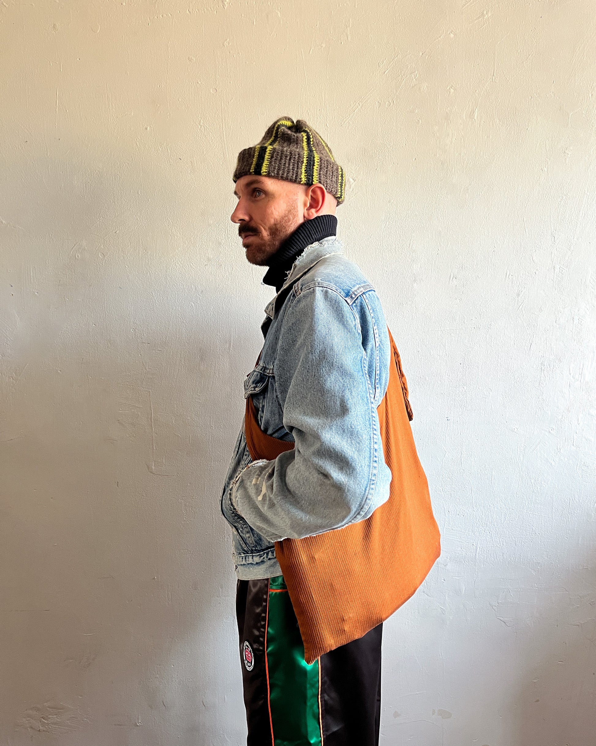 Teracotta Crossbody Sling Tote Bag with Adjustable Straps in End-of-Roll Deadstock burnt orange viscose